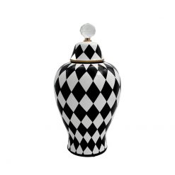ΚΕΡΑΜΙΚΟ ΒΑΖΟ ΜΕ ΚΑΠΑΚΙ Fylliana FL4197 ΡΟΜΒΟΥΣ ΜΑΥΡΟ-ΛΕΥΚΟ ΧΡΩΜΑ 20×37εκ