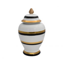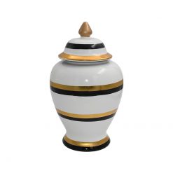 ΚΕΡΑΜΙΚΟ ΒΑΖΟ ME ΚΑΠΑΚΙ ΡΙΓΕ Fylliana FL2011 ΧΡΥΣΟ-ΜΑΥΡΟ-ΛΕΥΚΟ ΧΡΩΜΑ 19×33εκ