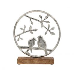 ΔΙΑΚΟΣΜΗΤΙΚΟ ΑΛΟΥΜΙΝΙΟΥ Fylliana Birds 3280 ΜΕ ΞΥΛΙΝΗ ΒΑΣΗ ΑΣΗΜΙ ΧΡΩΜΑ 25x5x23εκ