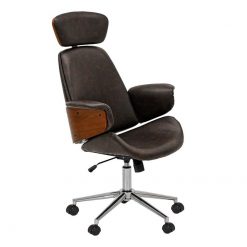 ΚΑΡΕΚΛΑ ΓΡΑΦΕΙΟΥ ΔΙΕΥΘΥΝΤΗ Fylliana FL921 ΚΑΦΕ ΤΕΧΝΟΔΕΡΜΑ ΜΕ ΚΑΡΥΔΙ ΞΥΛΟ 68x68x125εκ