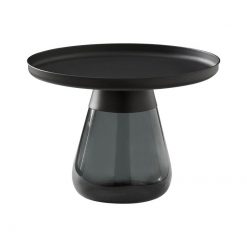 ΣΤΡΟΓΓΥΛΟ ΤΡΑΠΕΖΑΚΙ ΣΑΛΟΝΙΟΥ Fylliana FL828 ΜΕΤΑΛΛΙΚΟ ΜΕ ΓΥΑΛΙ ΜΑΥΡΟ-ΓΚΡΙ ΧΡΩΜΑ 50×52εκ