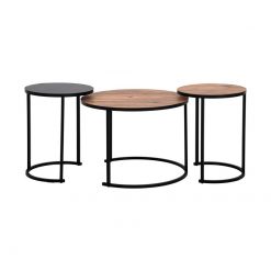 ΣΕΤ 3 ΤΕΜ ΤΡΑΠΕΖΑΚΙΑ Fylliana FL201 ΚΑΦΕ ΜΕ ΜΕΤΑΛΛΙΚΗ ΜΑΥΡΗ ΒΑΣΗ 60×44εκ & 38×49εκ