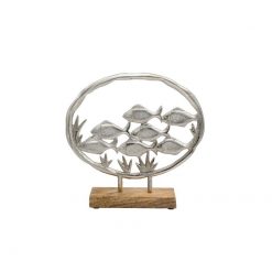 ΔΙΑΚΟΣΜΗΤΙΚΟ ΑΛΟΥΜΙΝΙΟΥ Fylliana Fish on ring 2803 ΜΕ ΞΥΛΙΝΗ ΒΑΣH ΑΣΗΜΙ ΧΡΩΜΑ 32x6x30εκ