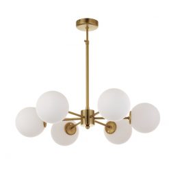 InLight Κρεμαστό φωτιστικό από χρυσό ματ μέταλλο και λευκή οπαλίνα 6XG9 D:55cm (5316-6)