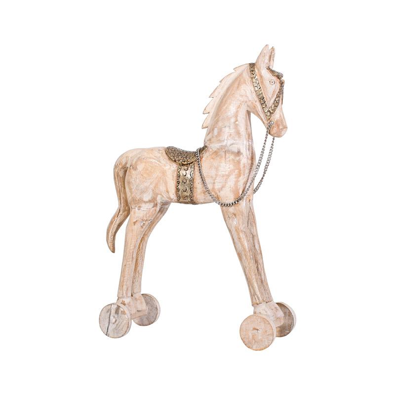 Ξύλο υψηλής ποιότητας, με μεταλλικά στοιχεία για τις διακοσμητικές αλυσίδες και τη σέλα.