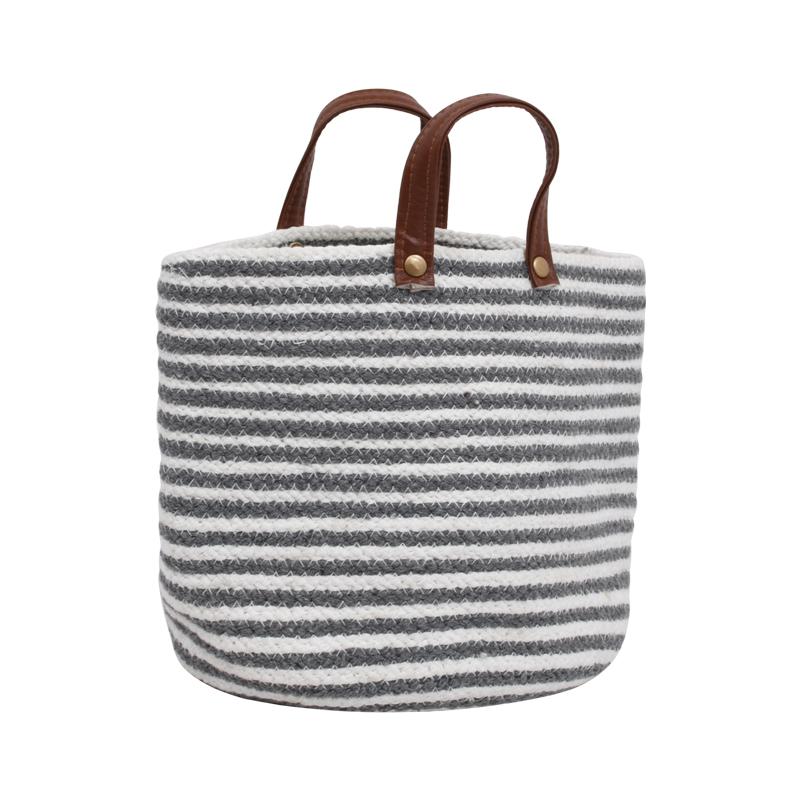 Ένα διακοσμητικό υφασμάτινο στρογγυλό καλάθι είναι ένα