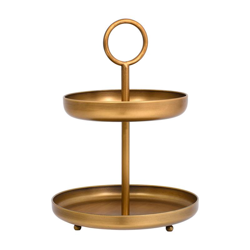 Υπέροχος διόροφος μεταλλικός διακοσμητικός δίσκος που προσδίδει λάμψη και στυλ στον χώρο. Η λεία επιφάνειά του και ο μοντέρνος σχεδιασμός τον καθιστούν ιδανικό για την παρουσίαση διάφορων διακοσμητικών αντικειμένων. Κατασκευασμένο από ανθεκτικό μέταλλο, προσφέρει μακροχρόνια αντοχή και διαχρονική ομορφιά. Ιδανικό για το κέντρο του τραπεζιού, την τραπεζαρία ή άλλους χώρους που επιθυμείτε να αναδείξετε.