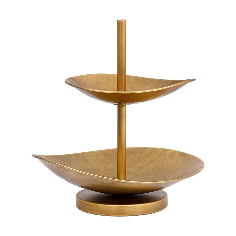 Υπέροχος διόροφος μεταλλικός διακοσμητικός δίσκος που προσδίδει λάμψη και στυλ στον χώρο. Η λεία επιφάνειά του και ο μοντέρνος σχεδιασμός τον καθιστούν ιδανικό για την παρουσίαση διάφορων διακοσμητικών αντικειμένων. Κατασκευασμένο από ανθεκτικό μέταλλο, προσφέρει μακροχρόνια αντοχή και διαχρονική ομορφιά. Ιδανικό για το κέντρο του τραπεζιού, την τραπεζαρία ή άλλους χώρους που επιθυμείτε να αναδείξετε.