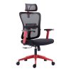 Η πλάτη της καρέκλας είναι κατασκευασμένη από ανθεκτικό πλέγμα (mesh), το οποίο επιτρέπει την καλή κυκλοφορία του αέρα. Με αυτόν τον τρόπο αποφεύγεται η συσσώρευση θερμότητας και υγρασίας στην περιοχή της πλάτης, διατηρώντας τον χρήστη δροσερό και άνετο ακόμη και μετά από πολλές ώρες καθιστικής εργασίας. Το κάθισμα είναι επενδυμένο με ύφασμα υψηλής αντοχής, προσφέροντας ευχάριστη αίσθηση, ανθεκτικότητα στη χρήση και σωστή υποστήριξη.