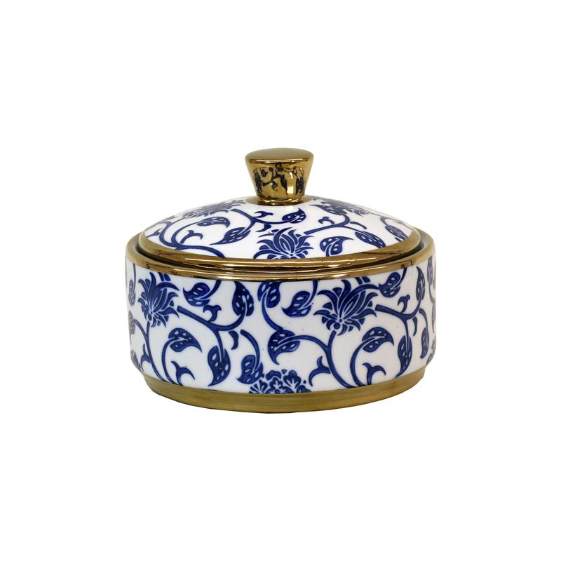 ΚΕΡΑΜΙΚΟ ΔΟΧΕΙΟ ΜΕ ΚΑΠΑΚΙ Fylliana FL22960 ΜΠΛΕ-ΛΕΥΚΟ-ΧΡΥΣΟ ΧΡΩΜΑ 15×11εκ