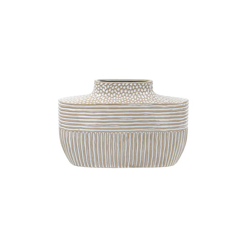 Προσθέστε μια πινελιά κομψότητας στον χώρο σας με αυτό το εντυπωσιακό διακοσμητικό βάζο. Χειροποίητο από κεραμικό και διακοσμημένο με μοναδικές λεπτομέρειες, αποτελεί την ιδανική επιλογή για εκλεπτυσμένους και μοντέρνους εσωτερικούς χώρους. Τοποθετήστε το στο τραπέζι, το ράφι ή την κονσόλα σας και δώστε έναν ιδιαίτερο χαρακτήρα στη διακόσμηση του σπιτιού σας.