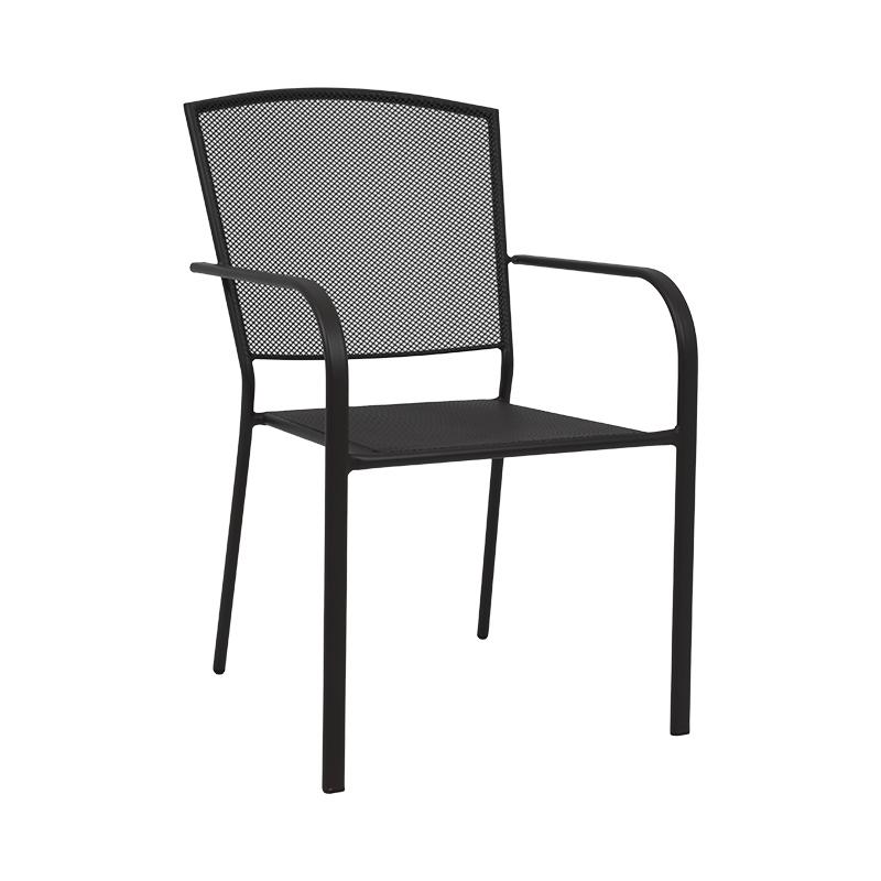 Σκελετός: Η καρέκλα είναι κατασκευασμένη εξ ολοκλήρου από μέταλλο, το οποίο είναι βαμμένο ηλεκτροστατικά. Αυτή η διαδικασία βαφής προσφέρει υψηλή αντοχή στη διάβρωση και την φθορά, εξασφαλίζοντας ότι η καρέκλα θα διατηρήσει το χρώμα και την εμφάνισή της ακόμη και μετά από μακροχρόνια χρήση σε εξωτερικούς χώρους.