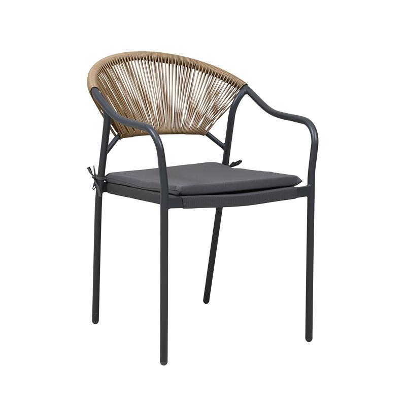 Σκελετός από Ατσάλι: Ο σκελετός της καρέκλας είναι κατασκευασμένος από ανθεκτικό ατσάλι, το οποίο προσφέρει υψηλή αντοχή στη φθορά και στις καιρικές συνθήκες. Το ατσάλι είναι επικαλυμμένο με αντισκωριακή προστασία για μακροχρόνια χρήση σε εξωτερικούς χώρους.