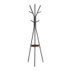 Το ενσωματωμένο ράφι στο μέσο του καλόγερου προσθέτει πρακτικότητα, επιτρέποντας την τοποθέτηση παπουτσιών, τσαντών ή διακοσμητικών αντικειμένων. Η στιβαρή μεταλλική κατασκευή εξασφαλίζει αντοχή και σταθερότητα, ενώ το λεπτό και διαχρονικό design του ταιριάζει εύκολα σε κάθε είδος διακόσμησης.