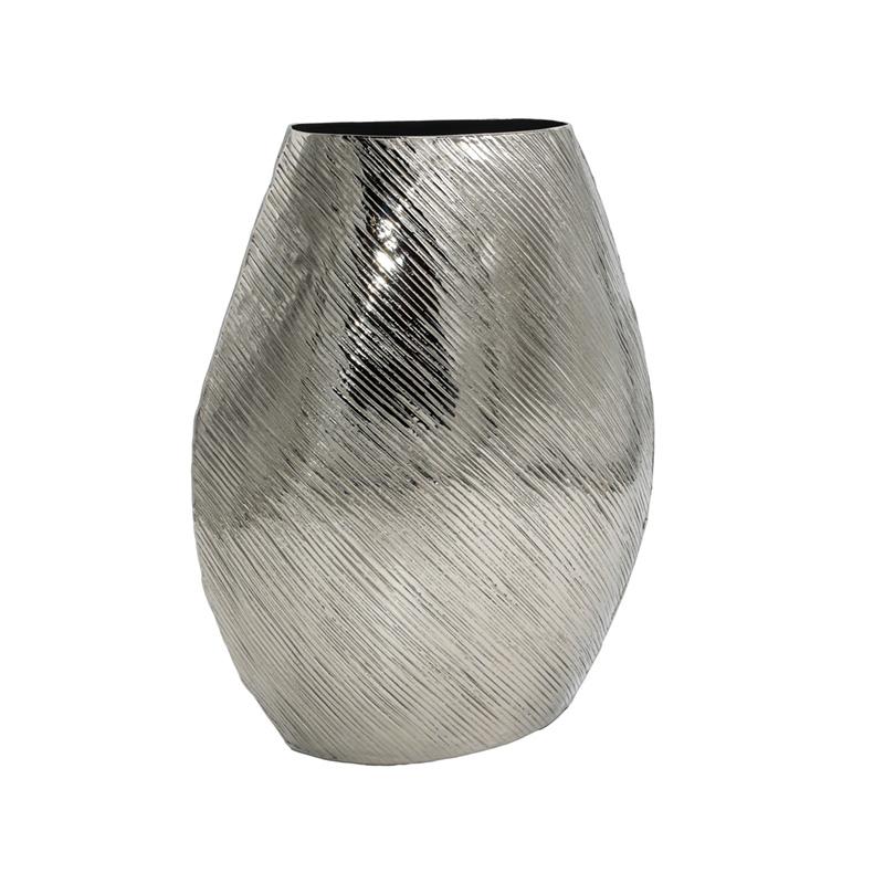 Ένα εκλεπτυσμένο μεταλλικό βάζο προσθέτει μια αίσθηση κομψότητας στον χώρο. Η λεία επιφάνεια και η εκκεντρική του γραμμή δημιουργούν ένα μοναδικό έργο τέχνης. Με τη δυνατότητα να φιλοξενεί λουλούδια ή να αποτελεί απλώς διακοσμητικό στοιχείο, αναδεικνύει την αισθητική του χώρου. Το σχήμα και το ύφος του προσθέτουν μια μοναδική γοητεία, ενώ η επιλογή χρώματος προσαρμόζεται στο στυλ της διακόσμησης.