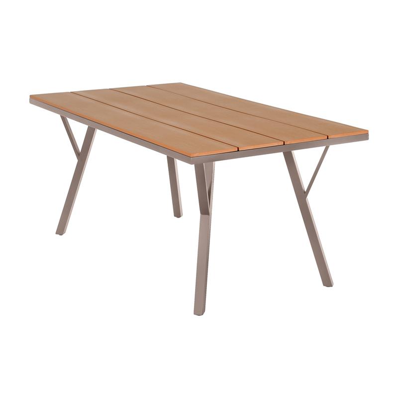 Αισθητική: Το polywood προσδίδει στο τραπέζι την εμφάνιση του φυσικού ξύλου, χωρίς όμως τα προβλήματα συντήρησης που συνήθως συνοδεύουν το ξύλο. Η συνδυασμένη αισθητική του ξύλου με το μοντέρνο μέταλλο καθιστά το τραπέζι ιδανικό για κάθε είδους εξωτερικό χώρο, από παραδοσιακούς κήπους μέχρι μοντέρνες βεράντες.