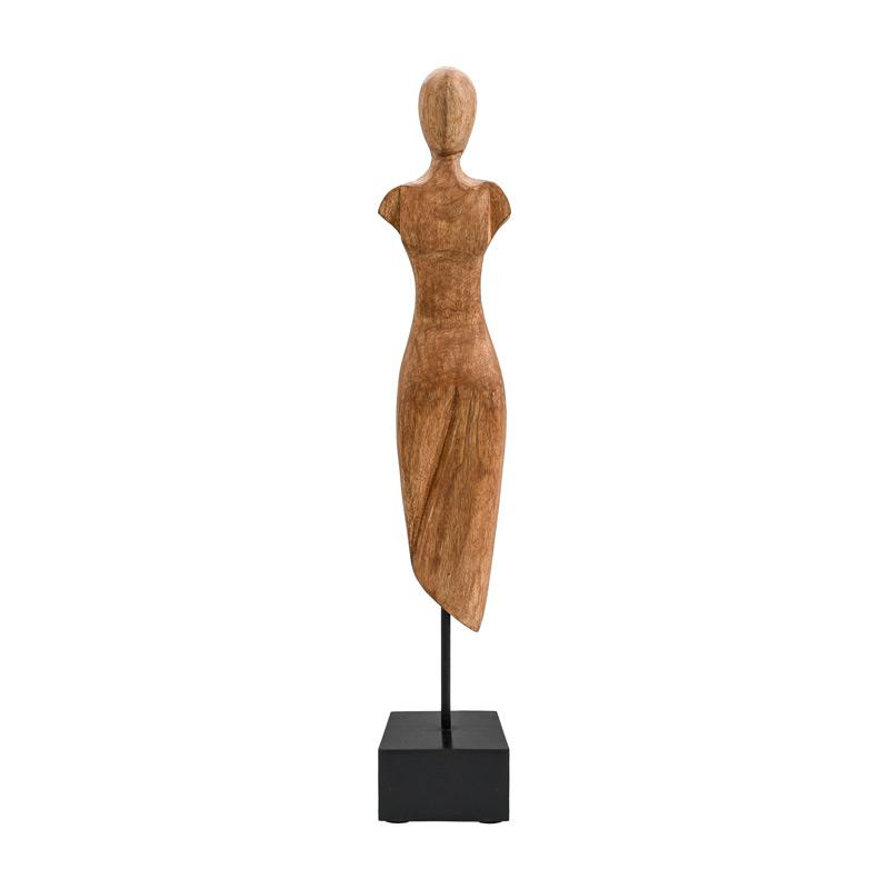 Η φιγούρα της γυναίκας, με τις καμπύλες και τη λεπτομερή σχεδίαση, προσδίδει μια αίσθηση κομψότητας και δυναμισμού, ενώ το φυσικό φινίρισμα αναδεικνύει την αυθεντικότητα και τη φυσικότητα του ξύλου.