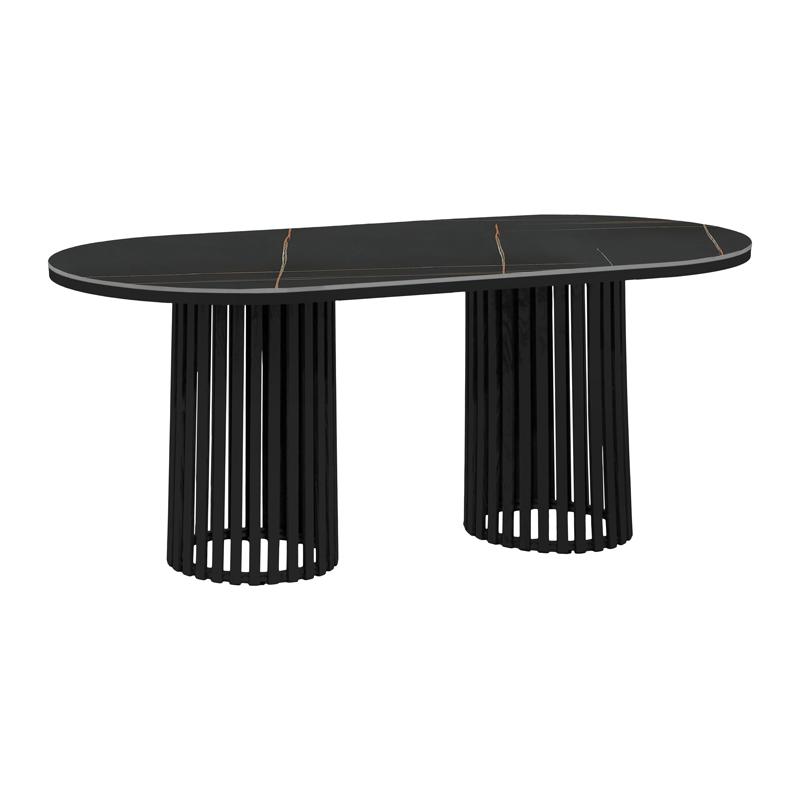 Το τραπέζι στηρίζεται σε δύο κυλινδρικές κολώνες τοποθετημένες δεξια και αριστερά Οι κυλινδρικές κολώνες με τις ακτινωτά τοποθετημένες δοκούς προσδίδουν μια δυναμική αισθητική, συνδυάζοντας την ανθεκτικότητα με την κομψότητα. Το στοιχείο αυτό σίγουρα δίνει έμφαση στη σταθερότητα και την ισορροπία, καθιστώντας το τραπέζι ιδανικό κεντρικό κομμάτι για μια τραπεζαρία.