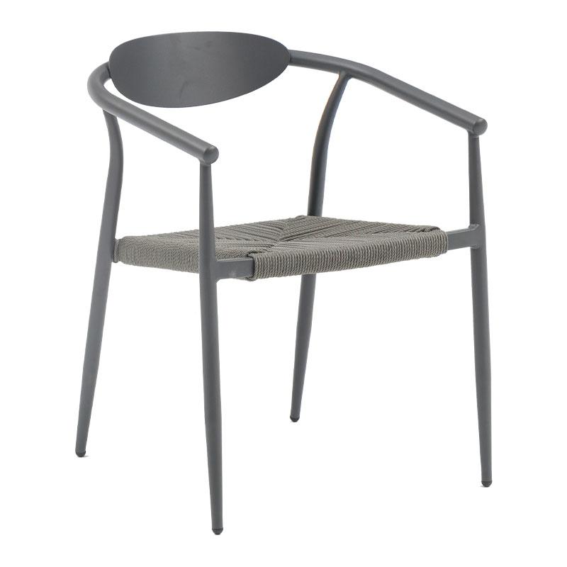Κάθισμα: Το κάθισμα της καρέκλας είναι κατασκευασμένο από πλέξη σχοινιού τύπου Rattan. Το Rattan είναι ένα συνθετικό υλικό, σχεδιασμένο να προσομοιάζει το φυσικό rattan, αλλά με βελτιωμένη ανθεκτικότητα και αντοχή στις καιρικές συνθήκες και την υγρασία. Το σχοινί είναι πλεγμένο με τέτοιο τρόπο ώστε να προσφέρει άνεση και υποστήριξη, ενώ διατηρεί μια ελαφριά και αεράτη αίσθηση.