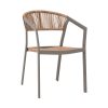 Πλάτη με PE Rattan Twist: Η ελαφρώς κυρτή πλάτη της καρέκλας είναι επενδεδυμένη με ειδικής επεξεργασίας PE Rattan Twist, ένα συνθετικό υλικό που προσφέρει την αίσθηση του φυσικού rattan, αλλά με μεγαλύτερη αντοχή στις εξωτερικές συνθήκες. Το PE Rattan είναι ανθεκτικό στην υγρασία, την ηλιακή ακτινοβολία και τη θερμότητα, διατηρώντας την εμφάνισή του αναλλοίωτη για πολλά χρόνια.