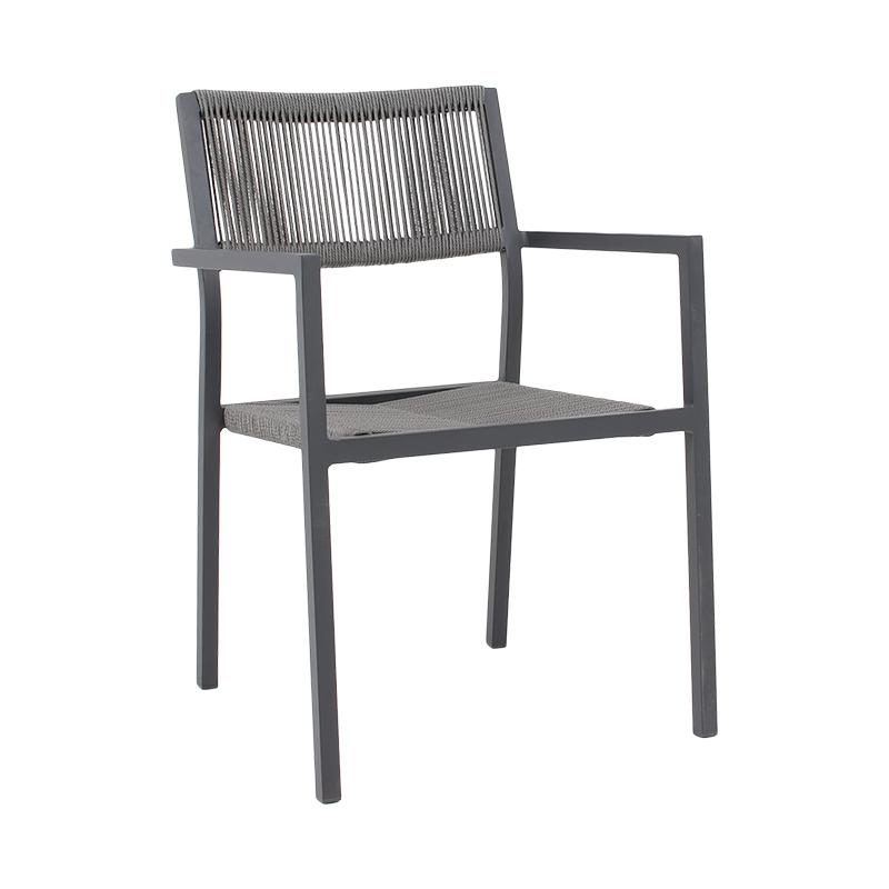 Σκελετός από Αλουμίνιο: Ο σκελετός της καρέκλας είναι κατασκευασμένος από ελαφρύ και ανθεκτικό αλουμίνιο, το οποίο δεν σκουριάζει και προσφέρει σταθερότητα και αντοχή, καθιστώντας την κατάλληλη για εξωτερική χρήση. Το αλουμίνιο είναι επικαλυμμένο με ηλεκτροστατική βαφή για επιπλέον προστασία από τη φθορά και τις καιρικές συνθήκες.