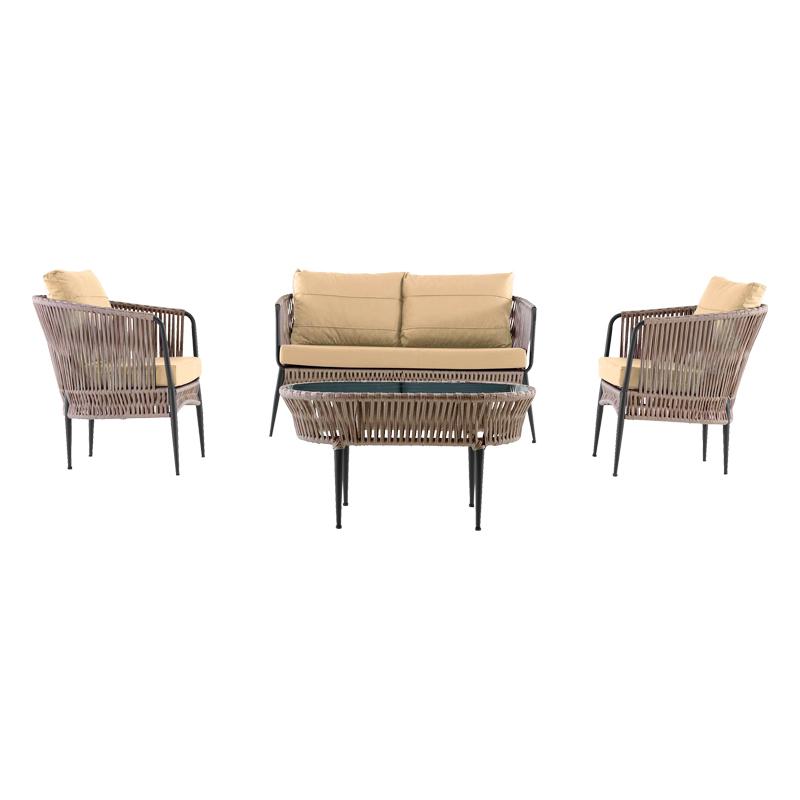 Διαμορφώστε τον κήπο ή το μπαλκόνι σας σε μια γωνιά χαλάρωσης με ιδιαίτερο στιλ και σύγχρονο design. Το σετ κήπου Lines αποτελείται από διθέσιο καναπεδάκι, 2 πολυθρόνες και τραπεζάκι και είναι κατασκευασμένο από ανθεκτικό σκελετό αλουμινίου και χοντρό πολυεστερικό κορδόνι σε πλέξη. Περιλαμβάνει τα μαξιλάρια πλάτης και καθίσματος, πάχους 10εκ., κατασκευασμένα από water repellent ύφασμα ιδιαίτερης αντοχής.