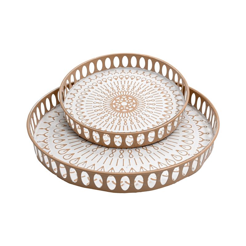 Συνδυαστική Διακόσμηση: Το σετ περιλαμβάνει δύο δίσκους διαφορετικών μεγεθών που μπορούν να χρησιμοποιηθούν μαζί ή ξεχωριστά, προσφέροντας ευελιξία στη διακόσμηση και τη χρήση.