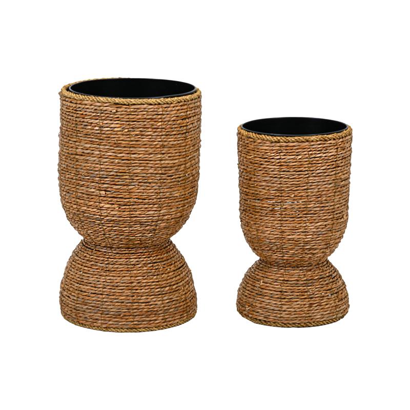 Αναβαθμίστε τη διακόσμηση του εσωτερικού ή εξωτερικού σας χώρου με αυτό το υπέροχο σετ τριών ψάθινων κασπώ, σχεδιασμένο για να δώσει φυσική ζεστασιά και στυλ σε κάθε περιβάλλον. Το σετ περιλαμβάνει δύο κασπώ διαφορετικών μεγεθών, προσφέροντας ευελιξία στη χρήση και τη διακόσμηση.