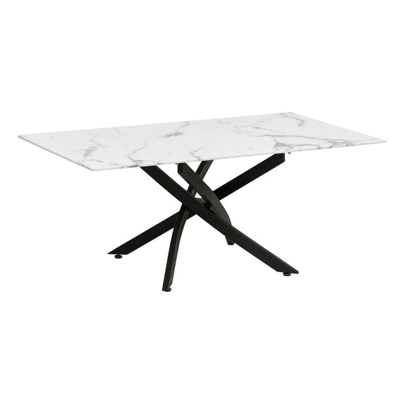 Η επιφάνεια του γυαλιού είναι διακοσμημένη με μια όψη μαρμάρου, η οποία δίνει την εντύπωση πραγματικού μαρμάρου. Αυτή η όψη μπορεί να είναι είτε σε λευκό μαρμάρινο σχέδιο με γκρι φλέβες είτε σε άλλες αποχρώσεις όπως μαύρο με λευκές φλέβες, ανάλογα με το σχέδιο. Το αποτέλεσμα είναι μια κομψή και πολυτελής εμφάνιση που προσθέτει έναν διαχρονικό χαρακτήρα στο τραπέζι.