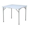 Η επιφάνεια του τραπεζιού είναι κατασκευασμένη από ενισχυμένο πρωτογενές πλαστικό HDPE, προσφέροντας υψηλή αντοχή στη φθορά, την υγρασία και την ηλιακή ακτινοβολία. Ο μεταλλικός σκελετός σε γκρι απόχρωση εξασφαλίζει σταθερότητα και ανθεκτικότητα, ακόμα και σε επαγγελματική, εντατική χρήση.
