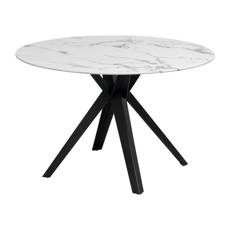 Λευκό μάρμαρο με μαύρα μεταλλικά πόδια.