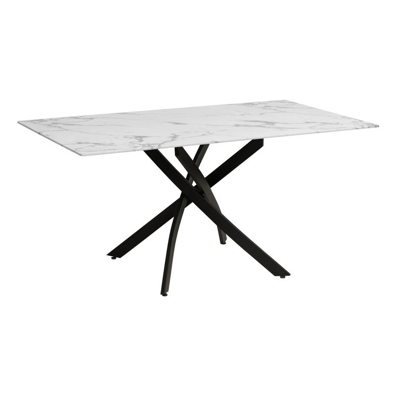 Λευκό μάρμαρο με μαύρα μεταλλικά πόδια.