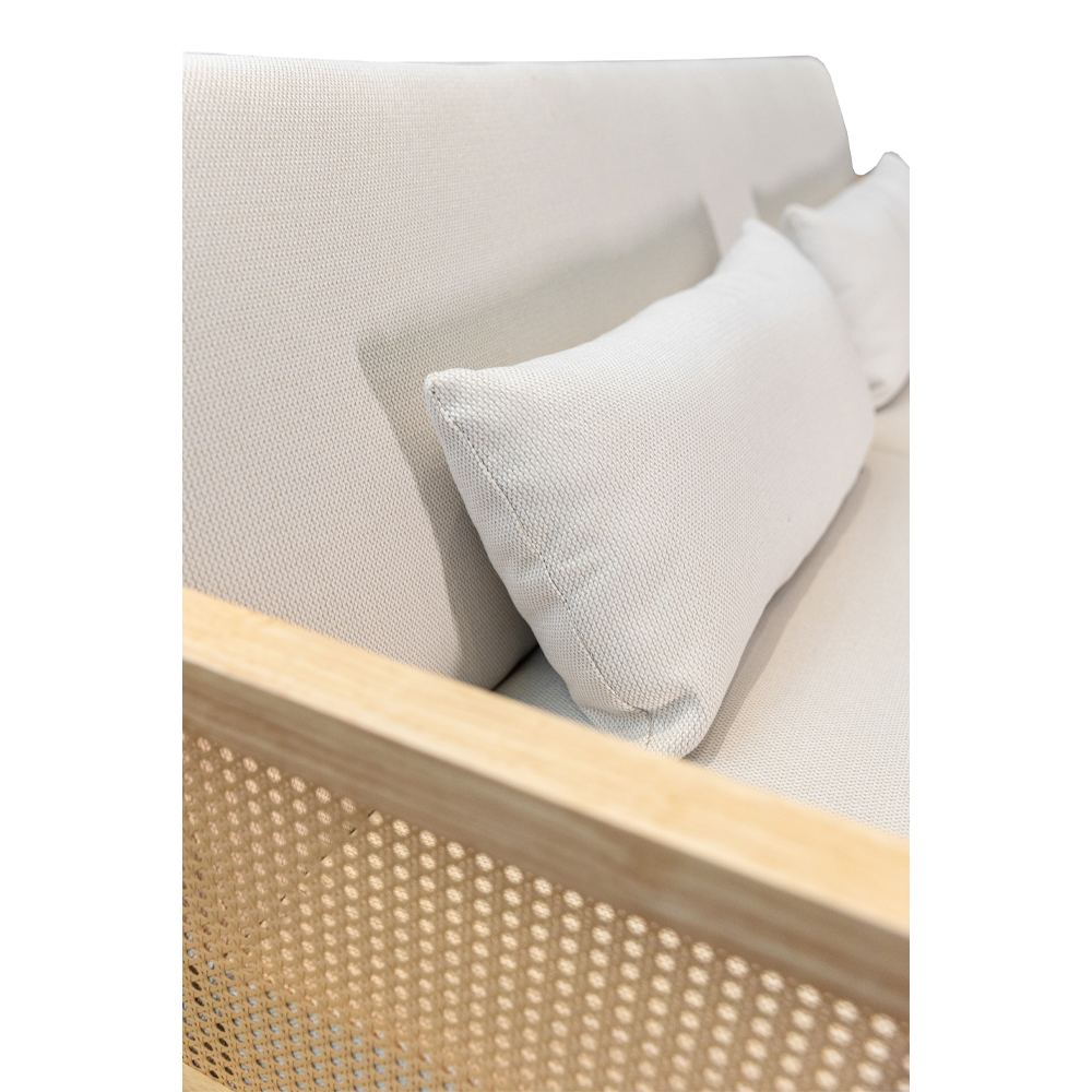 Ο τριθέσιος καναπές κρεβάτι Ammos αποτελεί την ιδανική επιλογή για όσους αναζητούν λειτουργικότητα και διαχρονική κομψότητα. Επενδυμένος με ύφασμα chenille σε εκλεπτυσμένη απόχρωση off-white, αποπνέει αίσθηση καθαρότητας και φινέτσας. Το μοναδικό του design συνδυάζει τη φυσική αισθητική του ξύλου rubberwood και τις λεπτομέρειες από rattan σε φυσική απόχρωση, προσδίδοντας ζεστασιά και στυλ στον χώρο σας. Η στιβαρή του κατασκευή, από ξύλο ευκαλύπτου, εγγυάται ανθεκτικότητα, ενώ η πολυχρηστική του φύση τον καθιστά ιδανικό για καθημερινή χρήση αλλά και για φιλοξενία. Ο καναπές κρεβάτι Ammos ενσωματώνει την τέλεια ισορροπία μεταξύ μοντέρνου και κλασικού σχεδιασμού, δημιουργώντας έναν ατμοσφαιρικό χώρο γεμάτο αρμονία.