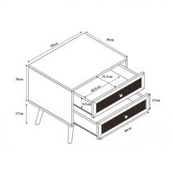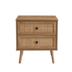 Φέρτε τη φυσική ομορφιά και τη ζεστασιά στον χώρο σας με το κομοδίνο Ammos. Κατασκευασμένο από επένδυση μελαμίνης σε φυσική απόχρωση ξύλου, αποπνέει διαχρονική κομψότητα και ζεστασιά. Τα δύο ευρύχωρα συρτάρια του, διακοσμημένα με όψεις από rattan, προσθέτουν μια ανάλαφρη και μποέμ αισθητική, ιδανική για χώρους που αναζητούν φυσικά υλικά και αυθεντικό στυλ. Το κομοδίνο Ammos συνδυάζει άψογα τη λειτουργικότητα με τη μοναδική αισθητική, καθιστώντας το απαραίτητη προσθήκη για κάθε κομψό υπνοδωμάτιο.