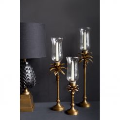 Το κηροπήγιο ANANIA 3 εντυπωσιάζει με τον μπρονζέ φοίνικα και το ψηλό γυάλινο κύλινδρο που δημιουργούν μια κομψή και εξωτική σύνθεση. Το αλουμίνιο προσφέρει στιβαρότητα και ανθεκτικότητα, ενώ το γυαλί προστατεύει το κερί και ενισχύει την ατμόσφαιρα φωτισμού. Ιδανικό για εισόδους, μπουφέδες, ξενοδοχειακούς χώρους ή statement corners στο σπίτι. Προσδίδει πολυτέλεια και ζεστή, ταξιδιάρικη διάθεση σε κάθε περιβάλλον.