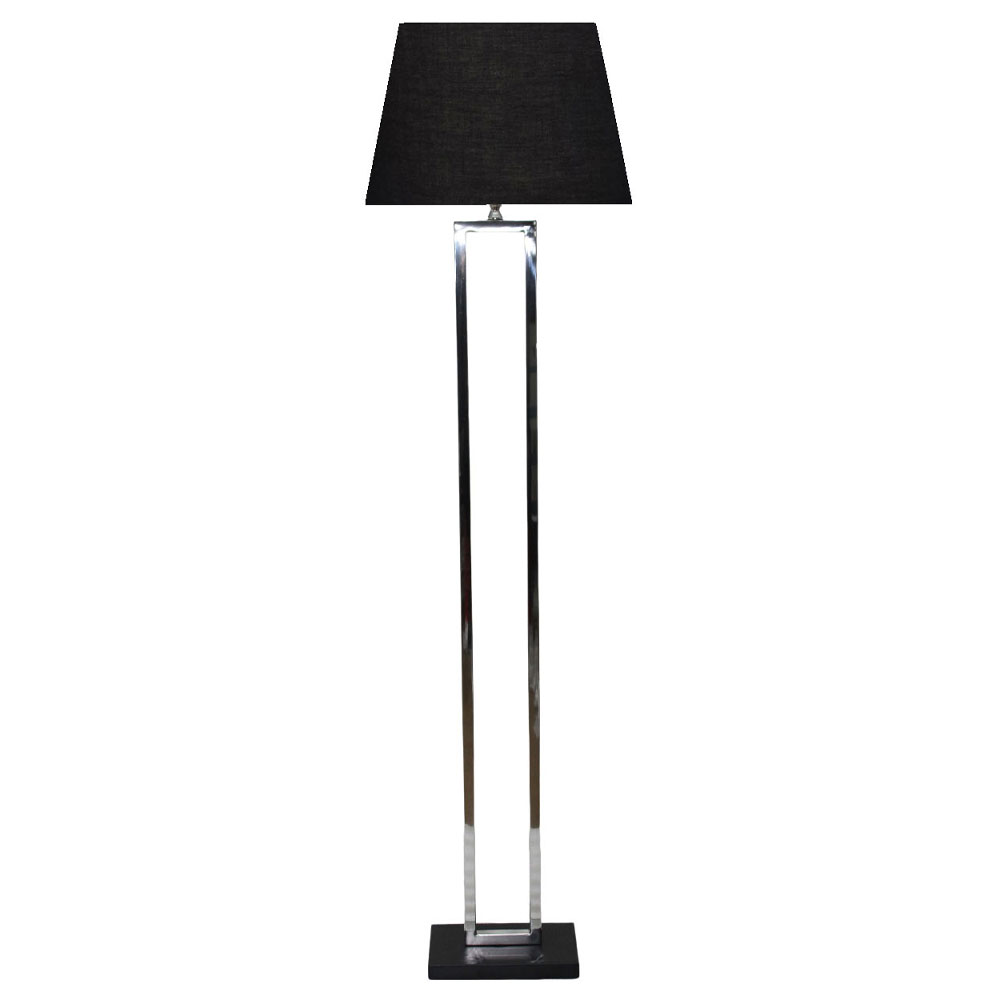 Το φωτιστικό δαπέδου ANSELM είναι ένα εκλεπτυσμένο φωτιστικό με ατσάλινη βάση και μαύρο υφασμάτινο καπέλο. Η κομψή του γεωμετρία και η μεταλλική λάμψη του δημιουργούν ισορροπία ανάμεσα στη μοντέρνα αισθητική και την κλασική φινέτσα.