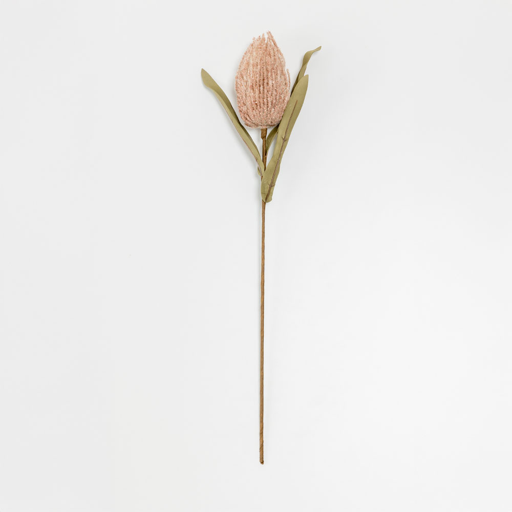Ροζ τεχνητό λουλούδι από αφρώδες υλικό με φυσικά πράσινα φύλλα, ιδανικό για διακόσμηση σε βάζα ή για χρήση σε ανθοσυνθέσεις. Η ρεαλιστική του υφή και η απλότητά του προσδίδουν μια κομψή και φυσική πινελιά στον χώρο.
