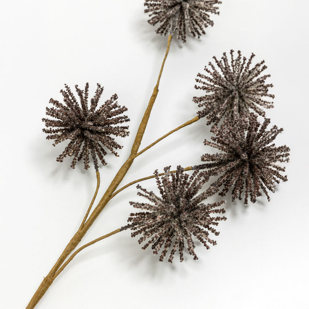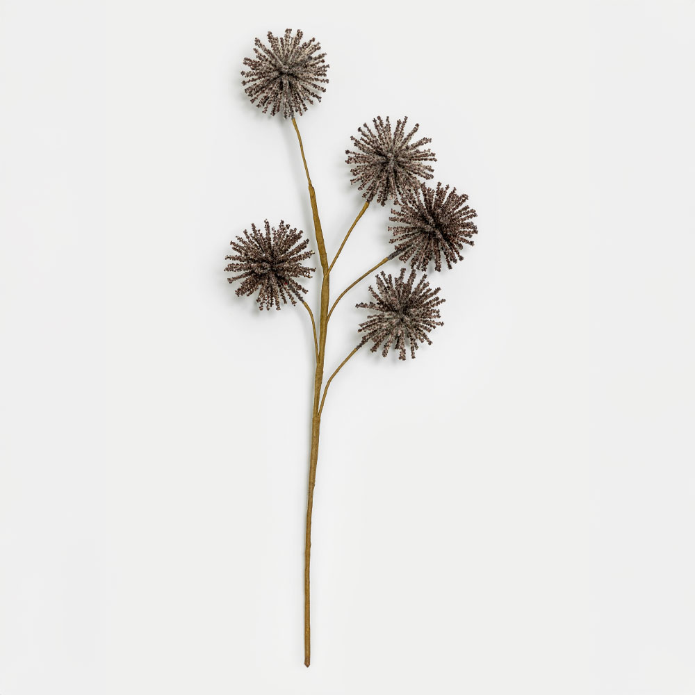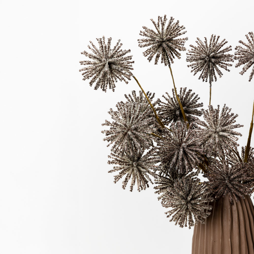 Το τεχνητό λουλούδι AROMA BLOSSOMS 70cm αποτελεί μια μοντέρνα και ιδιαίτερη προσθήκη για κάθε διακόσμηση. Με έξι εντυπωσιακά άνθη σε σχήμα σφαιρικής ακτινοβολίας και γήινη καφέ απόχρωση, τραβά το βλέμμα και προσθέτει υφή και ενδιαφέρον στις συνθέσεις σας. Το υλικό από foam και PVC του χαρίζει ανθεκτικότητα και φυσική όψη, ιδανικό για κάθε εποχή και στιλ. Συνδυάστε το με άλλα διακοσμητικά κλαδιά ή τοποθετήστε το σε ένα μίνιμαλ βάζο για κομψό αποτέλεσμα.