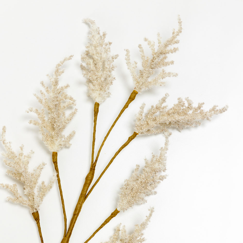 Ανάλαφρο και φυσικής όψης τεχνητό κλαδί σε απαλό μπεζ χρώμα. Το AROMA ESSENCE 67cm αποτυπώνει την κομψότητα της φύσης, προσφέροντας υφή και κίνηση σε κάθε διακοσμητική σύνθεση. Ιδανικό για minimal ανθοδέσμες, βάζα ή εποχιακά στολισμένα concepts.