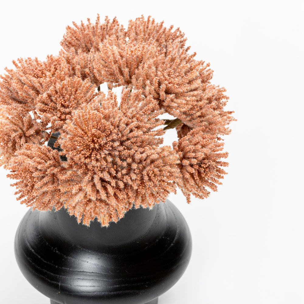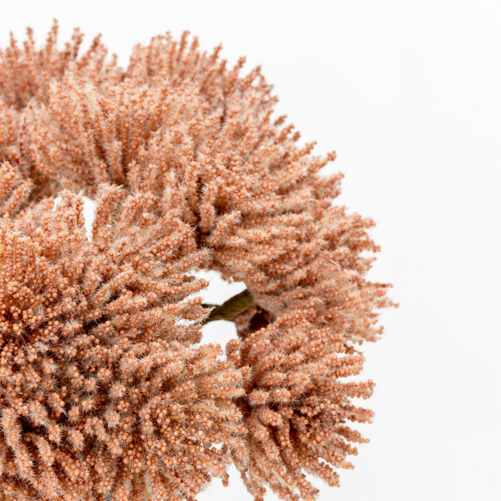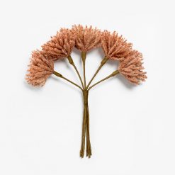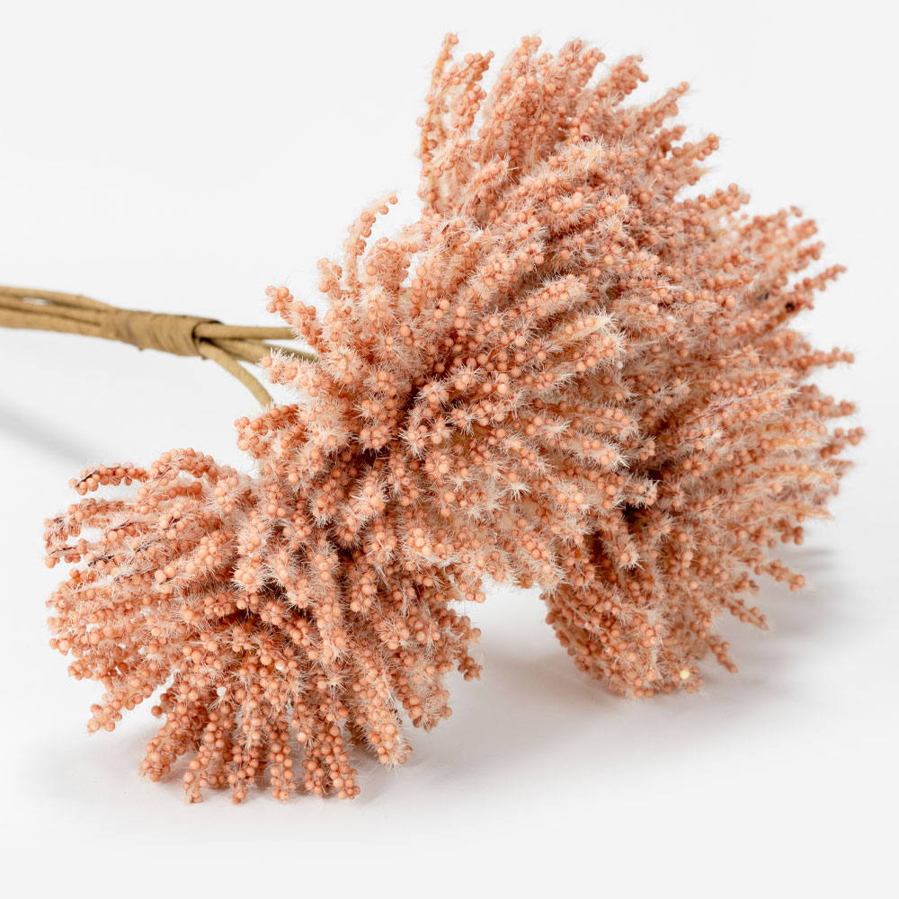Ένα εντυπωσιακό διακοσμητικό μπουκέτο με αφρώδη υφή και κοραλί απόχρωση. Ιδανικό για να προσθέσει φρεσκάδα και ξεχωριστή αισθητική σε βάζα, διακοσμητικές συνθέσεις ή εποχιακές διακοσμήσεις.