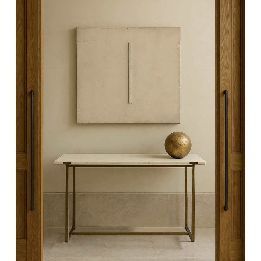 Αναδείξτε την κομψότητα και τη διαχρονική φινέτσα του χώρου σας με την κονσόλα Bakari. Η επιφάνειά της από γυαλιστερό λευκό μάρμαρο αποπνέει πολυτέλεια και φυσική ομορφιά, καθιστώντας την ιδανική για κάθε χώρο που απαιτεί στυλ και εκλεπτυσμένο χαρακτήρα. Ο σκελετός της, κατασκευασμένος από μέταλλο σε απόχρωση brass antique, προσφέρει μια αίσθηση vintage γοητείας, ενώ παράλληλα ενισχύει τη σταθερότητα και την ανθεκτικότητα του σχεδιασμού. Η κονσόλα Bakari είναι η τέλεια επιλογή για την είσοδο, το καθιστικό ή το υπνοδωμάτιο, αναβαθμίζοντας τη διακόσμηση με μια πινελιά πολυτέλειας και μοντέρνου χαρακτήρα.