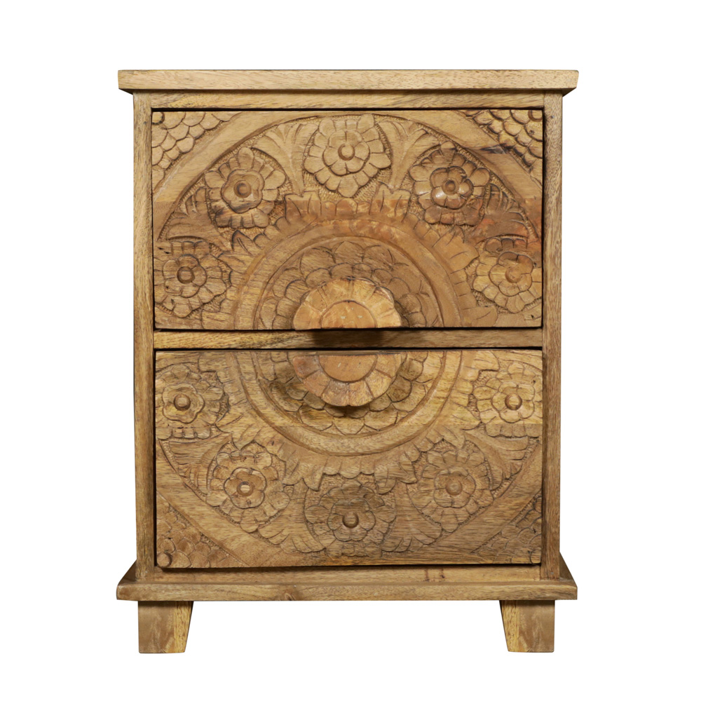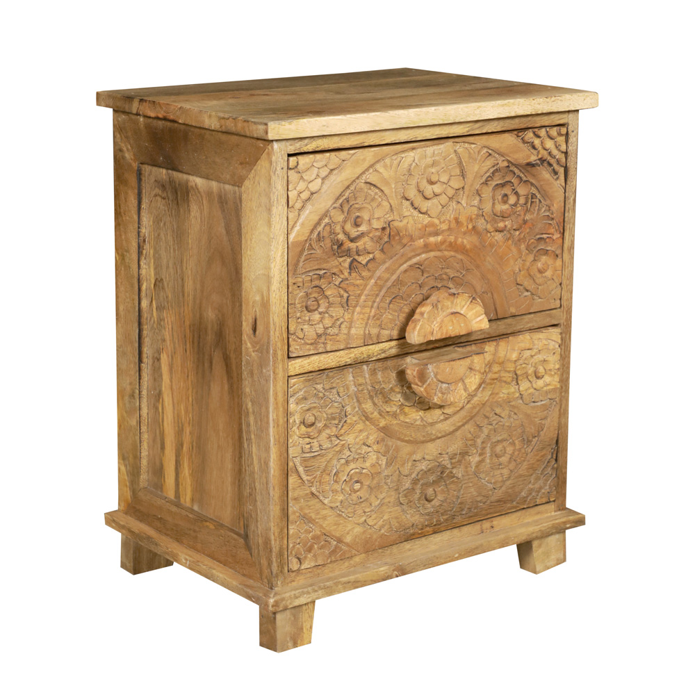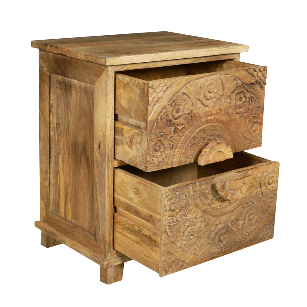 Το κομοδίνο Bali αναδεικνύει την εξωτική αισθητική και την απαράμιλλη φυσική ομορφιά του ξύλου mango. Με φυσική απόχρωση που τονίζει τα μοναδικά νερά του ξύλου, αποτελεί μια διαχρονική επιλογή για το υπνοδωμάτιο. Διαθέτει δύο ευρύχωρα συρτάρια με περίτεχνα σχέδια στις όψεις, προσφέροντας μοναδικό χαρακτήρα και λειτουργικότητα. Ένα έπιπλο που συνδυάζει την παράδοση με το μοντέρνο design, ιδανικό για όσους αναζητούν ξεχωριστή διακόσμηση.