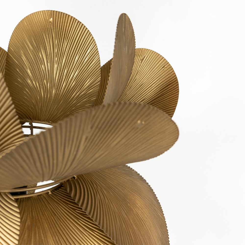Το επιδαπέδιο φωτιστικό BLOSSOM, κατασκευασμένο από μέταλλο σε brown gold φινίρισμα, ξεχωρίζει για τον λουλουδένιο και καλαίσθητο σχεδιασμό του. Με ύψος 152 cm, προσφέρει ήπιο, ατμοσφαιρικό φωτισμό, ενώ παράλληλα λειτουργεί ως διακριτικό διακοσμητικό στοιχείο στον χώρο. Το λεπτό μεταλλικό στέλεχος και η σταθερή βάση του το καθιστούν ιδανική επιλογή για γωνιές σαλονιού, μεγάλους χώρους ή ξενοδοχειακά lobby που αναζητούν φως με χαρακτήρα και κομψή παρουσία.