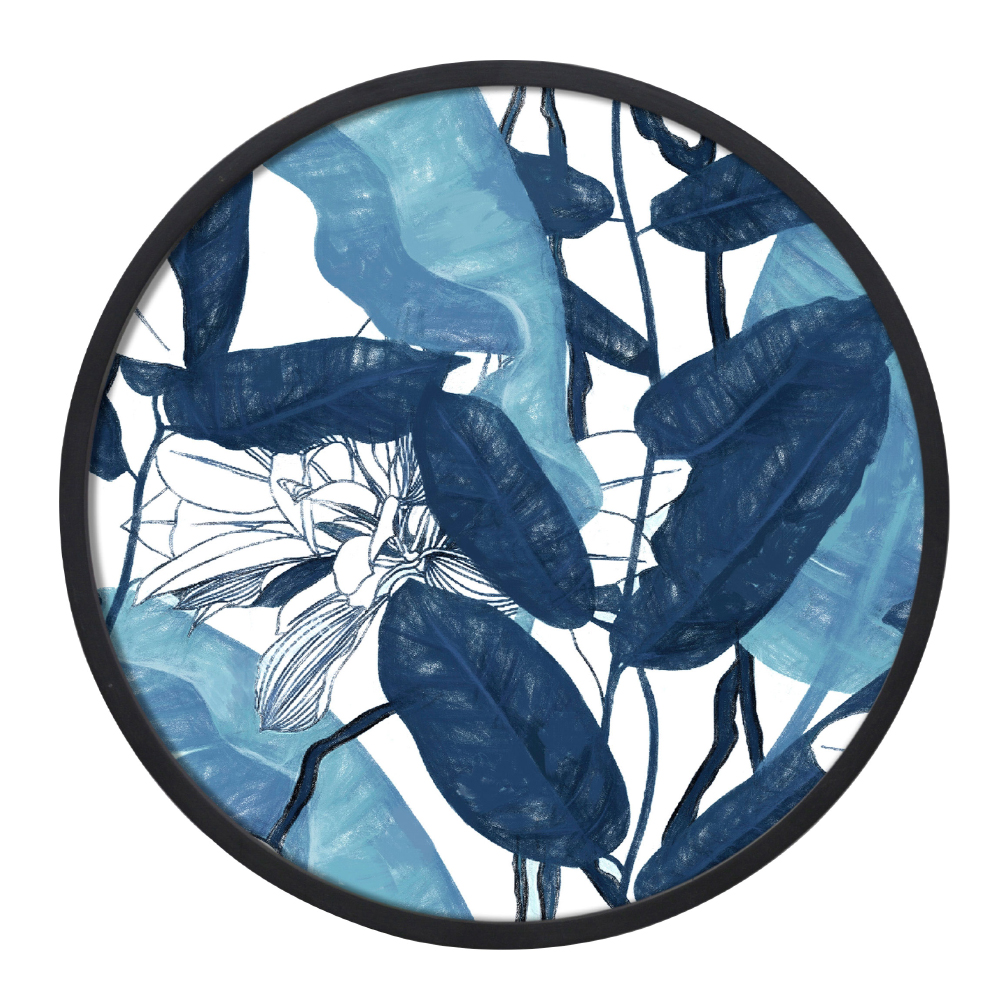 Ο BLU ROUND ξεχωρίζει με την κυκλική σύνθεση μπλε φύλλων και αφηρημένων οργανικών σχημάτων πάνω σε λευκό φόντο, δημιουργώντας μια δροσερή και καλλιτεχνική εικόνα με αίσθηση βάθους. Οι μπλε αποχρώσεις στο κέντρο και στη διάμετρο του κύκλου προσδίδουν ισορροπία και μοντέρνα minimal αισθητική. Ο καμβάς αναδεικνύει τις υφές, ενώ η μαύρη κορνίζα προσφέρει έντονη αντίθεση και premium παρουσία. Ιδανικός για καθιστικά, γραφεία και σύγχρονους χώρους που χρειάζονται μια κομψή, απαλή χρωματική νότα.