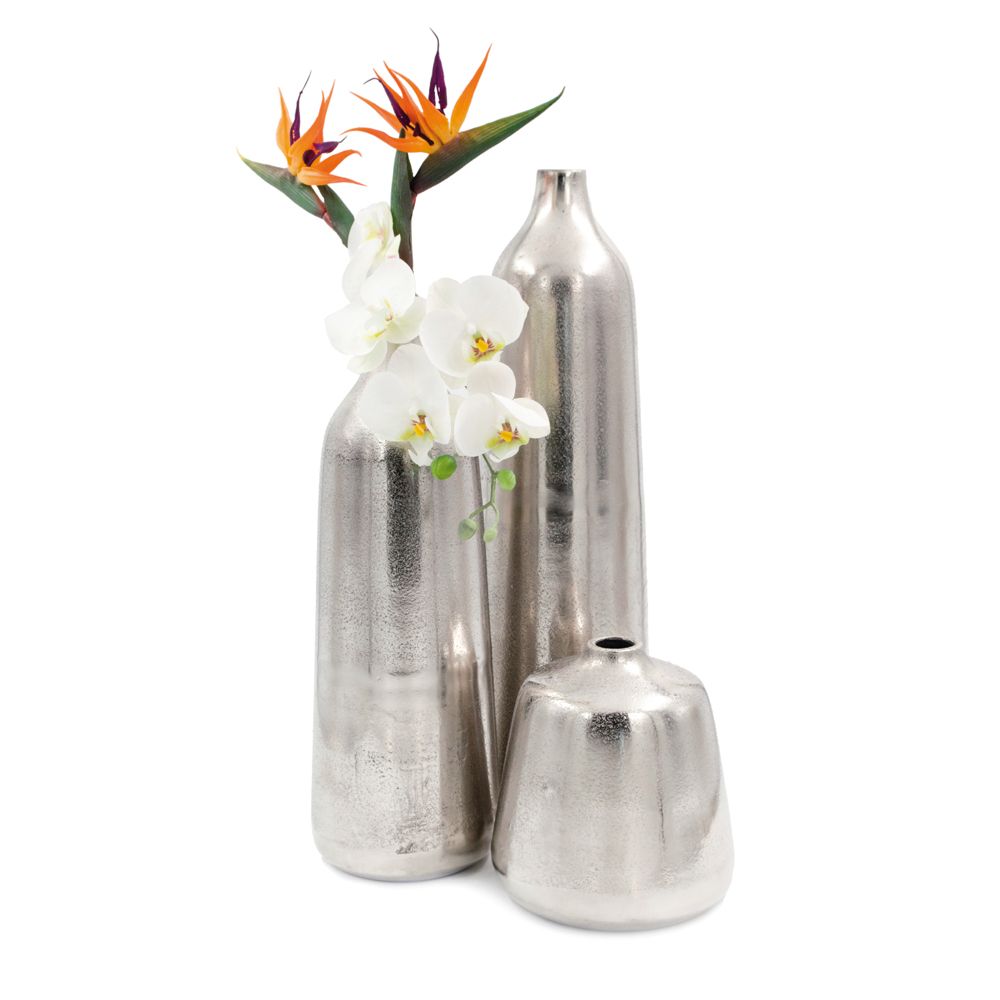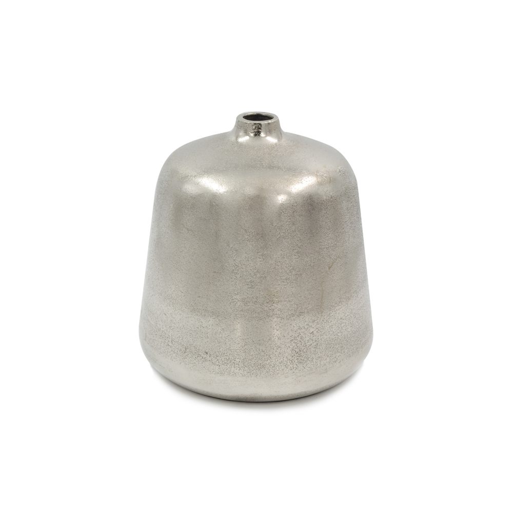 Η μπουκάλα BOTTICELI από αλουμίνιο έχει μια σύγχρονη, γλυπτική παρουσία με ασημί φινίρισμα που αντανακλά το φως με κομψότητα. Το στιβαρό υλικό της την καθιστά ιδανική για καθημερινό και επαγγελματικό styling. Ταιριάζει σε τραπεζάκια, ράφια και κονσόλες, προσφέροντας μοντέρνα λάμψη. Η απλότητα της φόρμας της την κάνει ευέλικτη σε κάθε αισθητική. Ένα κομμάτι που προσθέτει understated luxury σε κάθε χώρο.
