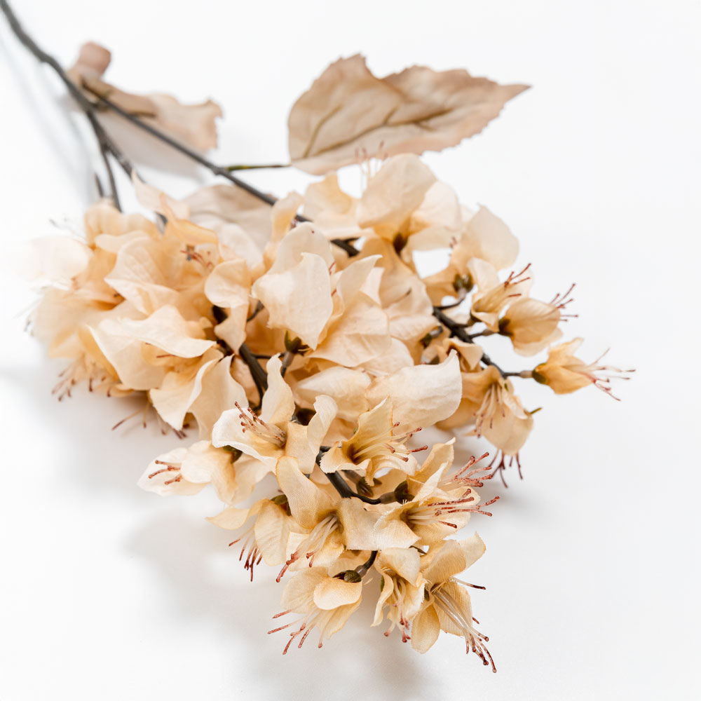 Το τεχνητό λουλούδι BOUGAINVILLEA 105cm σε μπεζ απόχρωση προσφέρει διακριτική κομψότητα και φυσική αίσθηση στη διακόσμηση κάθε χώρου. Με ρεαλιστική υφή από ανθεκτικό polyester, είναι ιδανικό για μοντέρνες, rustic ή minimal συνθέσεις χωρίς την ανάγκη συντήρησης. Τέλειο για βάζα, ανθοσυνθέσεις και διακοσμητικά στοιχεία που θέλουν φυσική ομορφιά και διάρκεια.