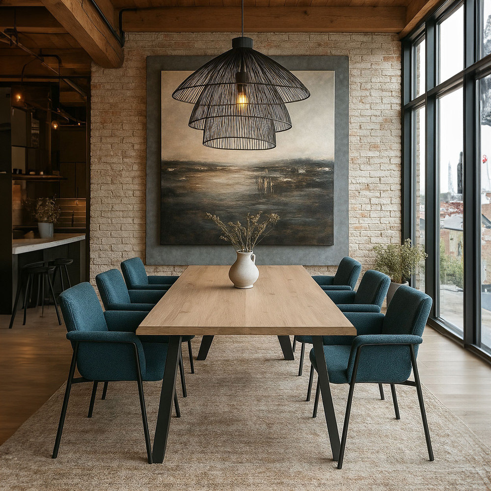 Το τραπέζι Brick-Urban αποτελεί μια ιδανική επιλογή για όσους αναζητούν μοντέρνο σχεδιασμό με ζεστή και φυσική αισθητική. Η επιφάνειά του με πάχος 50mm, σε φυσική απόχρωση και τεχνοτροπία live edge στις πλευρές, προσδίδει αίσθηση φυσικού ξύλου και παράλληλα εξασφαλίζει αντοχή. Τα μεταλλικά πόδια σε μαύρη απόχρωση ολοκληρώνουν το βιομηχανικό του στυλ, προσφέροντας σταθερότητα και στιβαρότητα. Το Brick-Urban είναι ιδανικό για την τραπεζαρία ή το καθιστικό σας, ενισχύοντας τη διακόσμηση του χώρου με την minimal αισθητική του. Με συνδυασμό λειτουργικότητας και στυλ, θα γίνει το επίκεντρο κάθε χώρου.