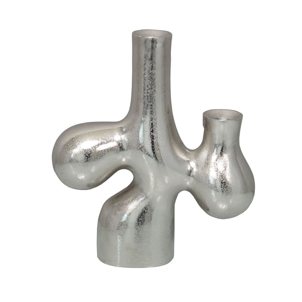 Το BRONTIE σε ασημί είναι ένα σύγχρονο κηροπήγιο από αλουμίνιο με ιδιαίτερη, καμπυλωτή μορφή που θυμίζει μικρό γλυπτό. Η μεταλλική του λάμψη χαρίζει διακριτική πολυτέλεια, ενώ η στιβαρή του κατασκευή προσφέρει σταθερότητα. Ιδανικό για να δώσει μοντέρνα κομψότητα σε τραπέζι, μπουφέ ή ράφι.
