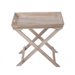 Το βοηθητικό τραπεζάκι Butler σε φυσικό χρώμα ξύλου είναι η ιδανική λύση για όσους αναζητούν λειτουργικότητα και στυλ σε ένα έπιπλο. Κατασκευασμένο από υψηλής ποιότητας υλικά, το τραπεζάκι αυτό προσδίδει μια αίσθηση φυσικής ομορφιάς και ζεστασιάς στον χώρο σας. Η επιφάνεια του τραπεζιού έχει τη μορφή δίσκου σερβιρίσματος, κάνοντας το ιδανικό για να σερβίρετε ποτά, σνακ ή ακόμα και γεύματα με άνεση και στυλ. Ο δίσκος είναι αφαιρούμενος και διαθέτει χερούλια για εύκολη μεταφορά, επιτρέποντάς σας να τον χρησιμοποιείτε και ξεχωριστά από τη βάση. Η βάση του τραπεζιού είναι σχεδιασμένη με έναν πρακτικό μηχανισμό που επιτρέπει την εύκολη αναδίπλωση και αποθήκευση όταν δεν το χρειάζεστε. Η σταθερότητα και η αντοχή της βάσης εξασφαλίζουν την ασφαλή χρήση του τραπεζιού σε διάφορους χώρους του σπιτιού, από το σαλόνι μέχρι τον κήπο.