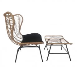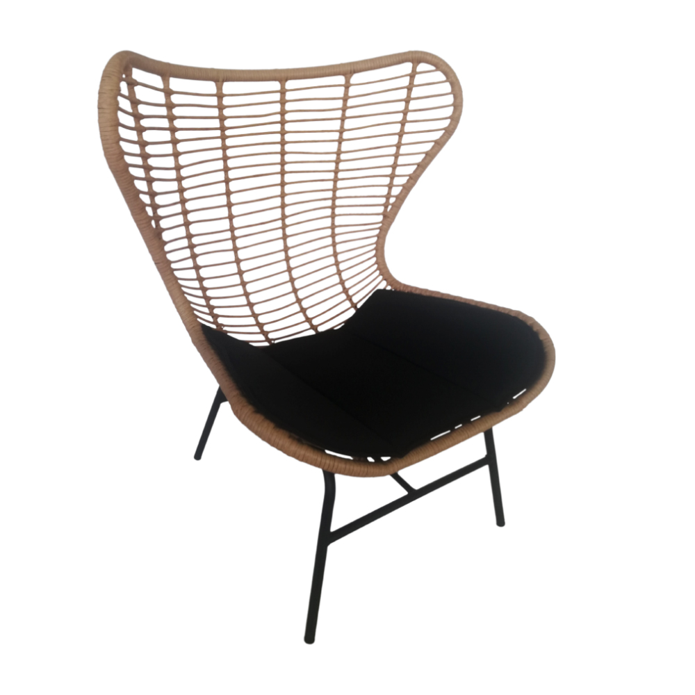 Η πολυθρόνα Butterfly σε φυσικό χρώμα, με υλικό PE Woven, είναι η τέλεια επιλογή για να προσθέσετε έναν αέρα κομψότητας και άνεσης στον χώρο σας. Ο μοναδικός σχεδιασμός της, εμπνευσμένος από τις γραμμές των φτερών μιας πεταλούδας, δημιουργεί μια εντυπωσιακή και φιλόξενη αίσθηση. Κατασκευασμένη από ανθεκτικό συνθετικό υλικό, η πολυθρόνα Butterfly προσφέρει εξαιρετική αντοχή στις καιρικές συνθήκες, καθιστώντας την ιδανική για χρήση τόσο σε εσωτερικούς όσο και σε εξωτερικούς χώρους. Το φυσικό χρώμα του υλικού προσδίδει μια αίσθηση ζεστασιάς και φυσικής ομορφιάς, ενώ το μαύρο μαξιλάρι στο κάθισμα προσφέρει επιπλέον άνεση και στυλ. Είτε την τοποθετήσετε στον κήπο, τη βεράντα ή το σαλόνι σας, θα προσθέσει μια νότα εκλεπτυσμένου design και θα γίνει το αγαπημένο σας σημείο για χαλάρωση και απόλαυση των μοναδικών σας στιγμών. Υπάρχει δυνατότητα συνδυασμού με το σκαμπώ Butterfly για περισσότερη άνεση!
